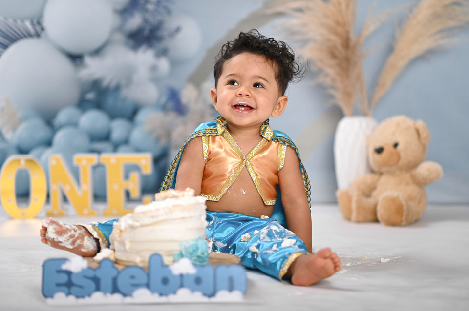 Il servizio fotografico per il Primo Compleanno del vostro bambino non potrebbe che essere uno SMASH CAKE! In assoluto la sessione più divertente e originale di tutte. Ogni allestimento è curato nei minimi dettagli personalmente da noi. A rendere il tutto ancora più speciale, ci sarà una bellissima torta abbinata al set. Sarà divertente vedere i primi approcci con una vera torta e quanti pastrocchi combinerà!